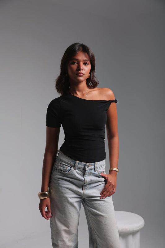 Sold outTwist Shoulder Top - Black
